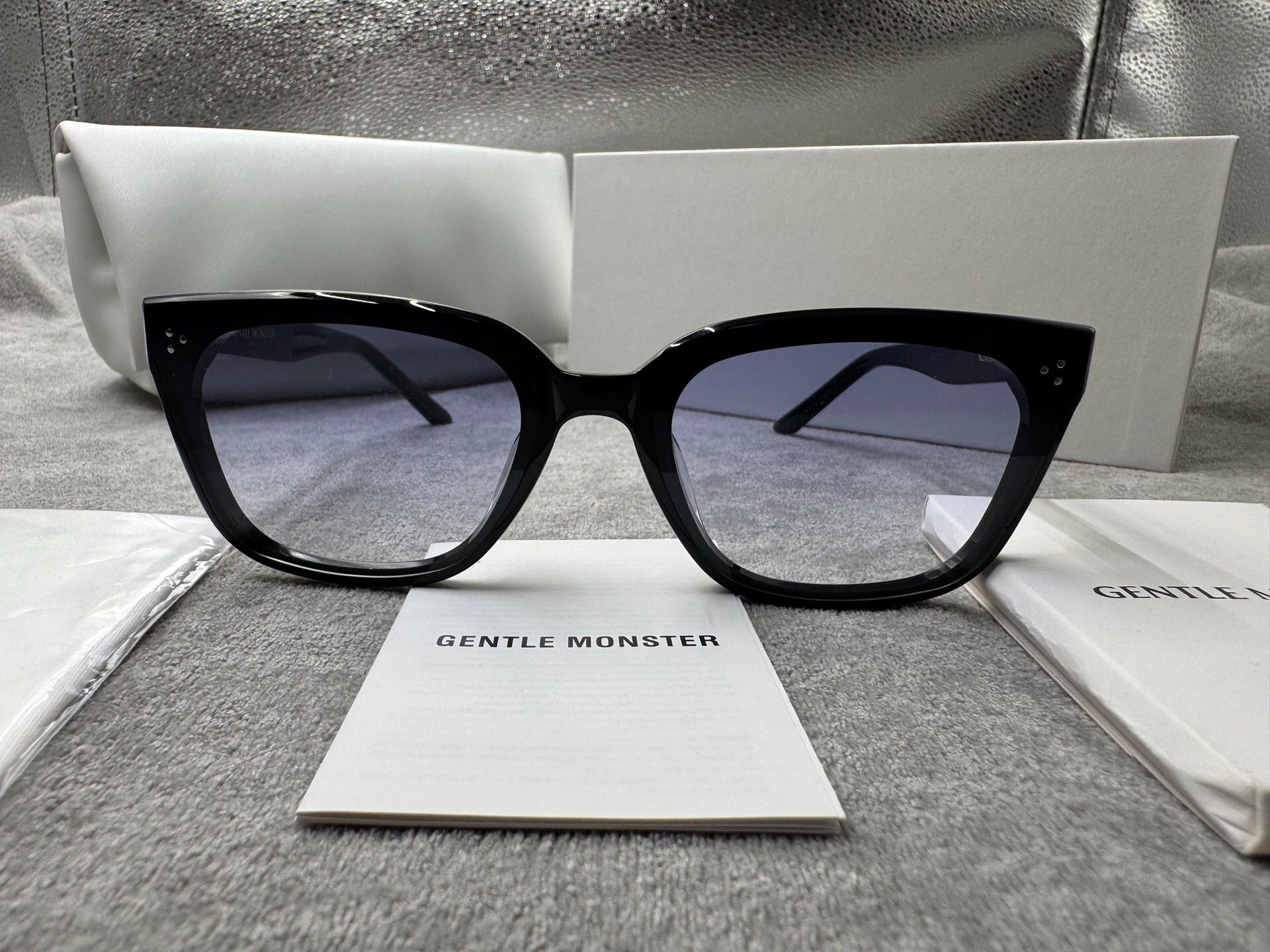 Gentle Monster 型號:numer 尺寸:64-16-146 黑色墨鏡 漸層藍色鏡片